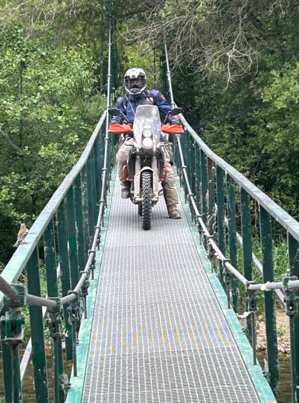 Un accompagnateur TrailRando encadre l’équipée au volant d’un véhicule transbahute chaque jour vos bagages à l’étape, et assure la maintenance de vos machines. Celle-ci suit l’épopée au plus près du tracé. Elle peut aussi éventuellement charger une moto et son pilote en cas de panne ou de fatigue.